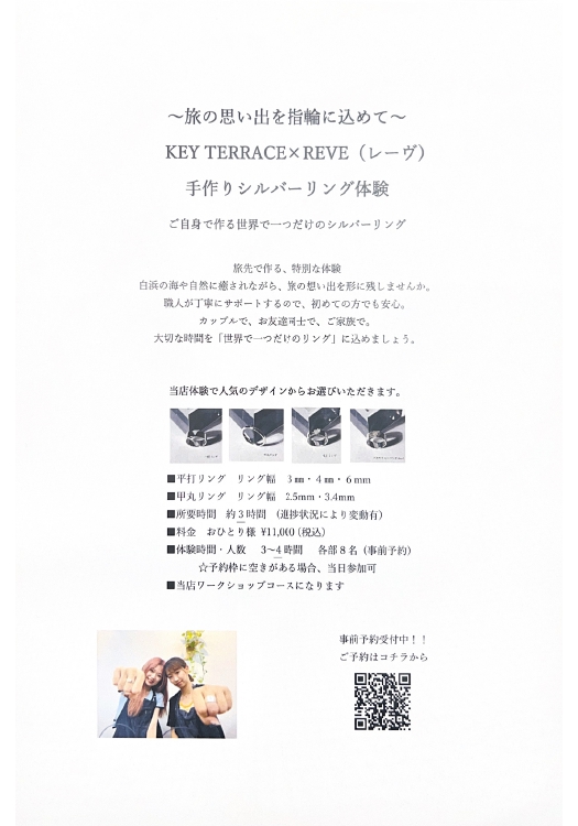 KEY TERRACEとREVE(レーヴ)は、共同企画による手作りシルバーリング体験イベント「旅の思い出を指輪に込めて」を2025年11月に開催いたします。